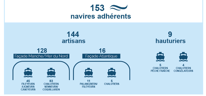 Regroupant à l’origine exclusivement des navires de pêche hauturière, le FROM Nord s’est progressivement ouvert à la pêche artisanale et compte aujourd’hui parmi ses membres :