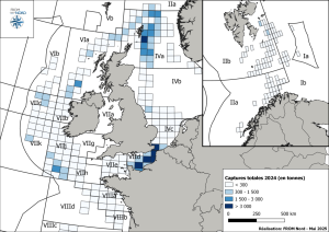 • Manche Est (Zone VIId du CIEM) – zone d’activité d’une grande partie des fileyeurs, caseyeurs et chalutiers côtiers.